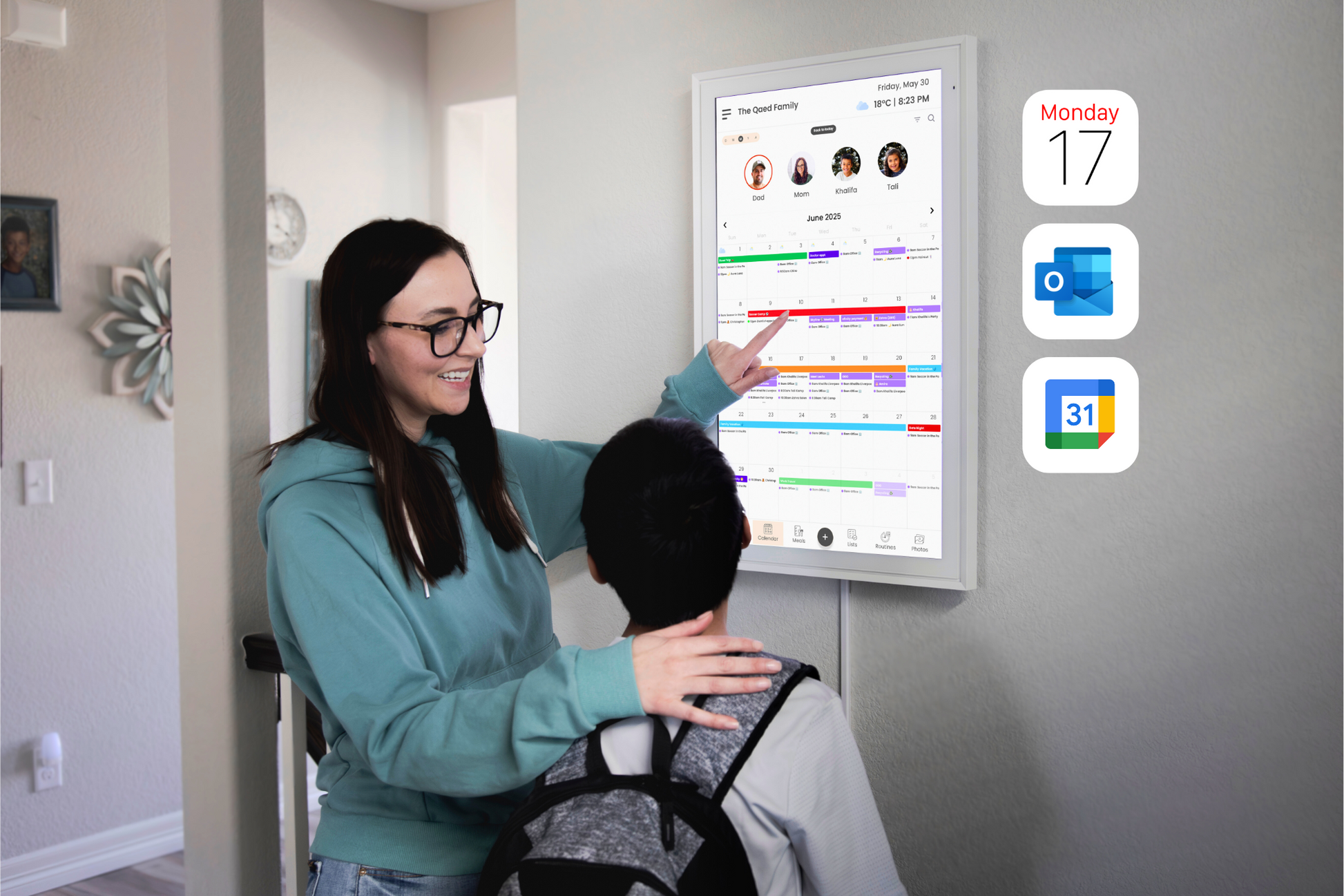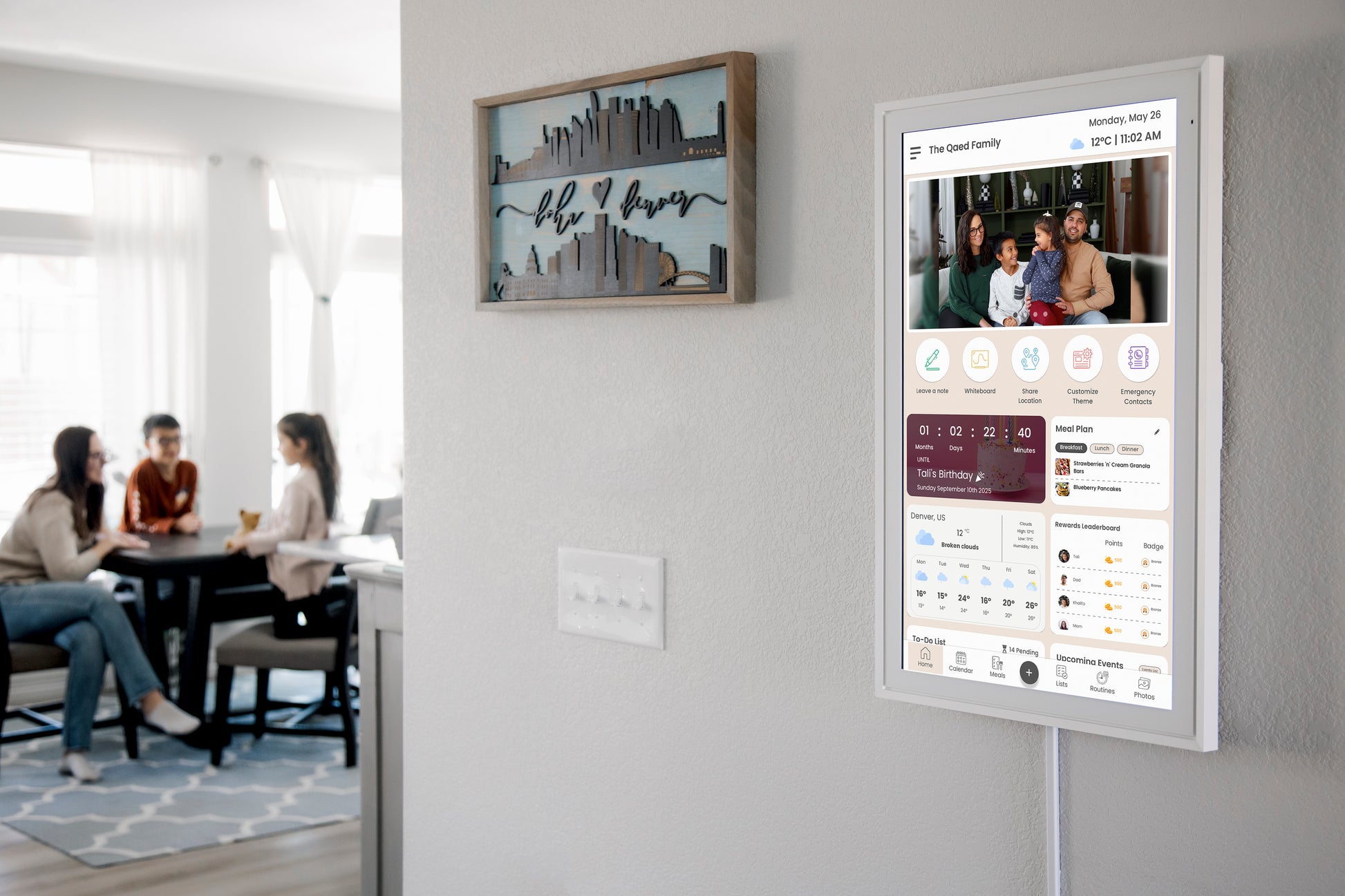 Hoot Display is a sleek touchscreen dashboard that keeps your family organized, connected, and on track — beautifully.